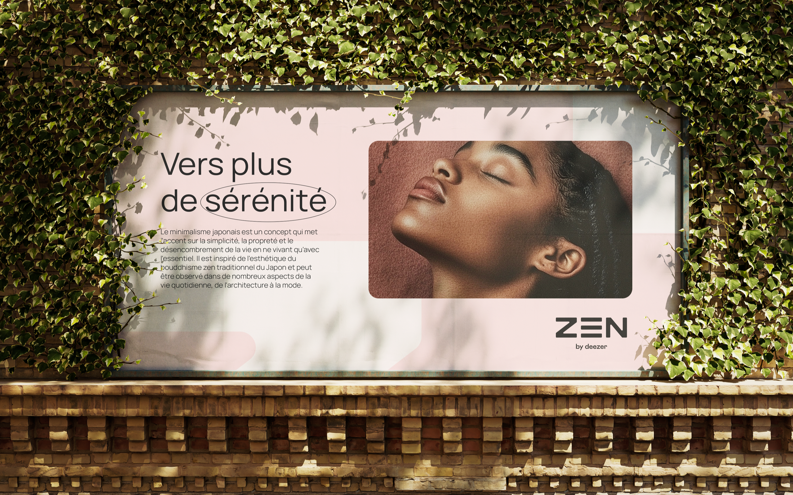 __A TRANSFORMATIVE WELLNESS EXPERIENCE ZEN, DEEZER’S WELLNESS APP, REACHED US TO LEAD A STRATEGIC REBRANDING AND ART DIRECTION INITIATIVE AIMED AT ELEVATING THE PLATFORM’S EMOTIONAL AND AESTHETIC RESONANCE. BY BLENDING MINIMALIST DESIGN WITH WARM, HUMAN-FOCUSED VISUALS, WE CRAFTED A BRAND EXPERIENCE THAT BRIDGES THE GAP BETWEEN SLEEK TECHNOLOGY AND PERSONAL WELL-BEING. THE REIMAGINED IDENTITY—ANCHORED IN A REFINED PALETTE OF LIGHT DARK CONTRASTS AND SKIN-INSPIRED TONES—SUPPORTED ZEN’S AMBITIOUS GOALS: TO INCREASE NEW USER ACQUISITION BY 30% AND IMPROVE BRAND PERCEPTION BY 76% WITHIN ITS TARGET AUDIENCE. THE RESULT, AN EMOTIONALLY INTELLIGENT DESIGN SYSTEM AND USER-FRIENDLY INTERFACE, POSITIONING THE PLATFORM AS A STANDOUT IN THE MINDFULNESS AND WELLNESS SPACE—STRENGTHENING DEEZER’S PRESENCE IN DIGITAL HEALTH__